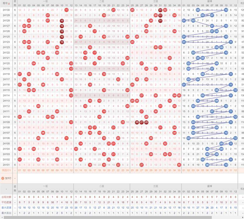 理解大小分区的概念是关键。在大乐透游戏中,通常会将35个红球分为大小两个区域,小号码区包含1-18号,大号码区则包括19-35号。这种划分有助于我们更清晰地看到哪些区域的号码在特定时期内出现得更为频繁。